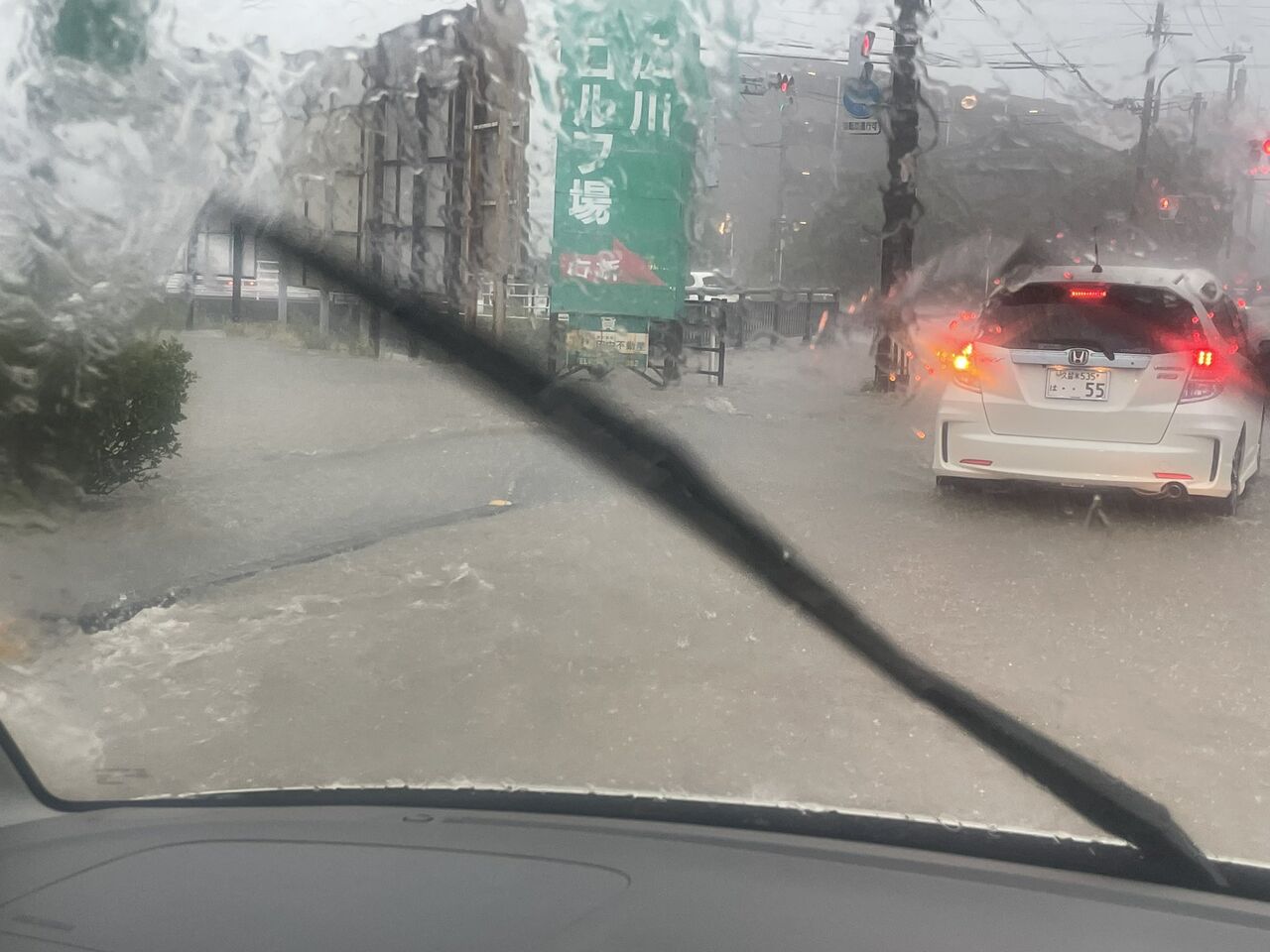 【現場の様子】#交通情報 大雨で道路冠水してる福岡県久留米市の様子 国道3号線上津町セブンイレブン付近水没運転注意9月16日 #福岡 #久留米 #ゲリラ豪雨 #三連休 #雷