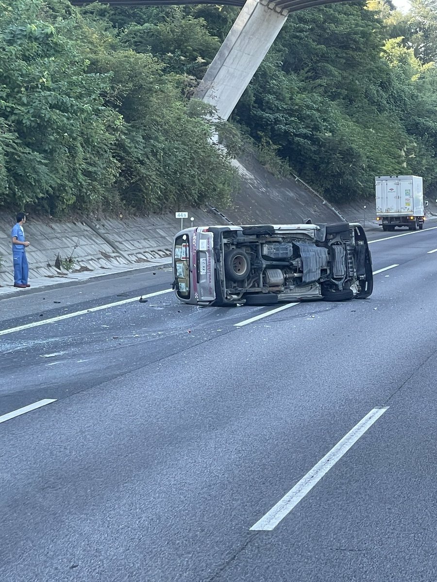 常磐道上りの北土浦IC過ぎぐらいでハイエースが横転してるから気をつけて✋