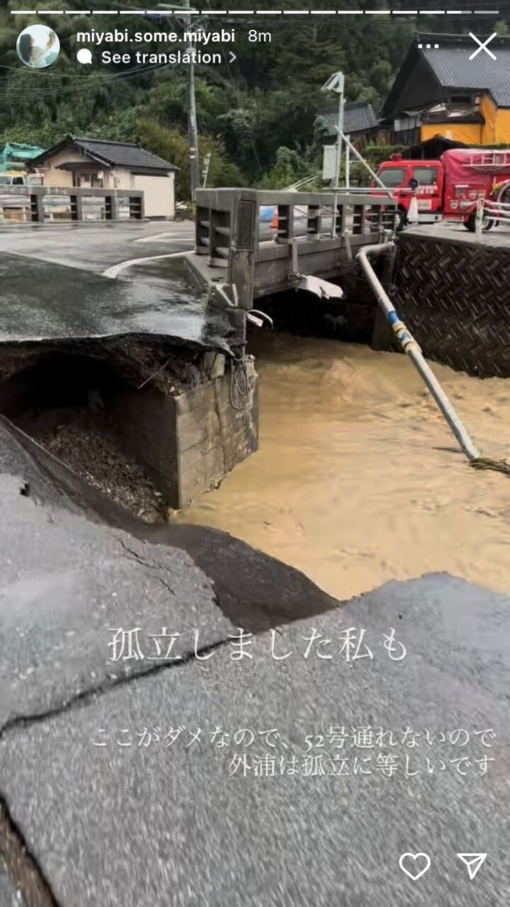 折戸川の水道管が壊れた為、狼煙町は断水、孤立状態になりました。飲料水や簡易トイレの支援をお願いします! pic.twitter.com/tQLgkdUw1k