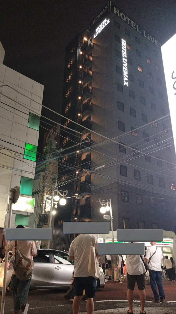 『なんか皆が上を向いてスマホ構えてると思ったら、ホテルリブマックスの階段手すりに人が登って最上階から飛び下り未遂?