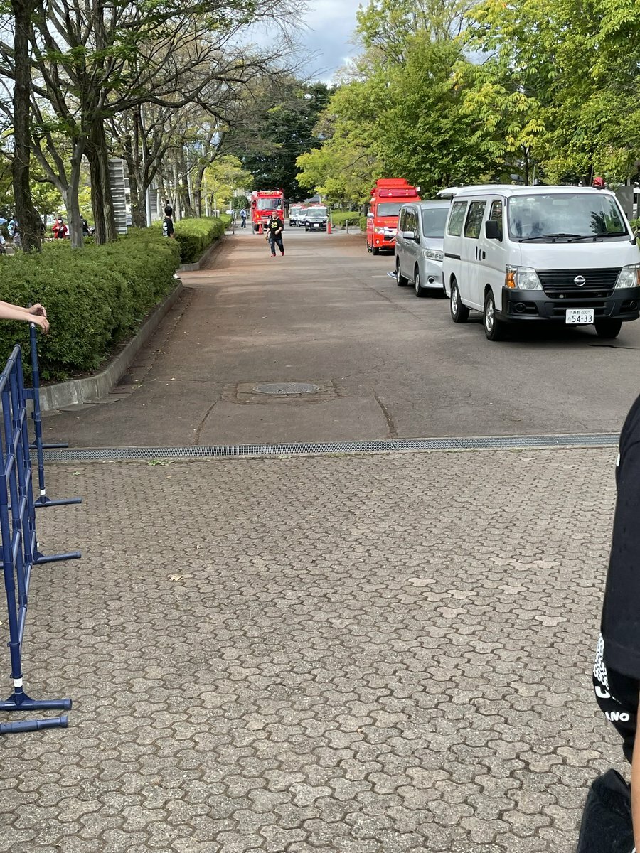 救急車到着。ステージの演奏と声援とサイレン🚨が入り混じって異様な雰囲気。』