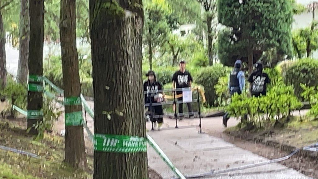 アニエラ、i☆Risステージの裏で刺傷事件発生でテンペストステージ最寄りのトイレから事件現場までホースが引かれ、ファントムステージとテンペストステージの間の階段が閉鎖されてる pic.twitter.com/5Wj79zwwve