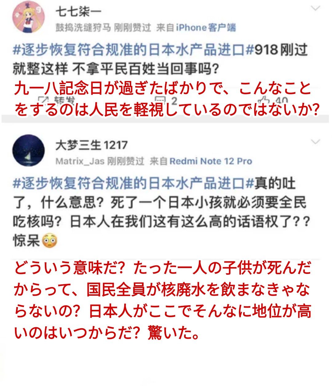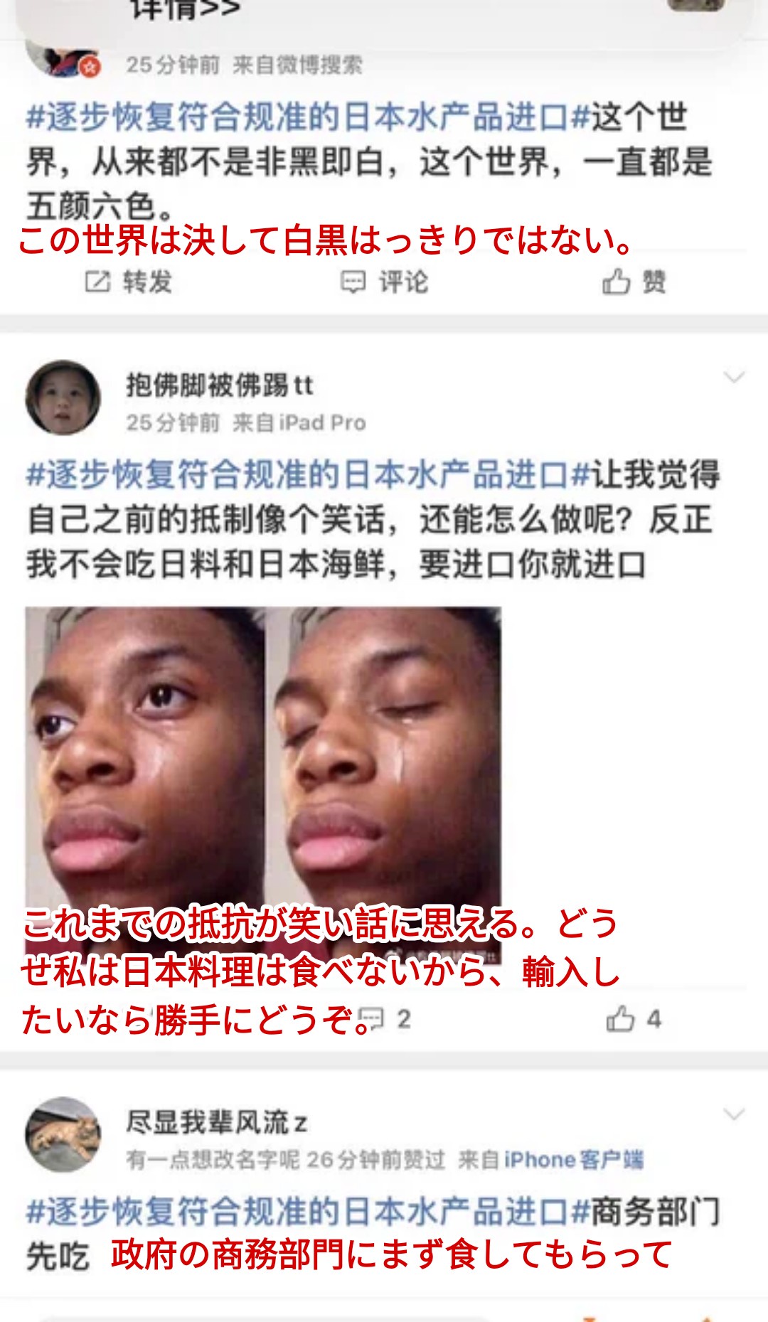 【終了】中国政府「すまん、日本産水産物輸入再開するわw」人民「!?!?」←阿鼻叫喚で炎上へ 2024/9/22 速報 1: かわいそう document.write(” + ”); 関連記事 document.write(” + ”); 続きを読む ——— Source: アルファルファモザイク 【終了】中国政府「すまん、日本産水産物輸入再開するわw」人民「!?!?」←阿鼻叫喚で炎上へ