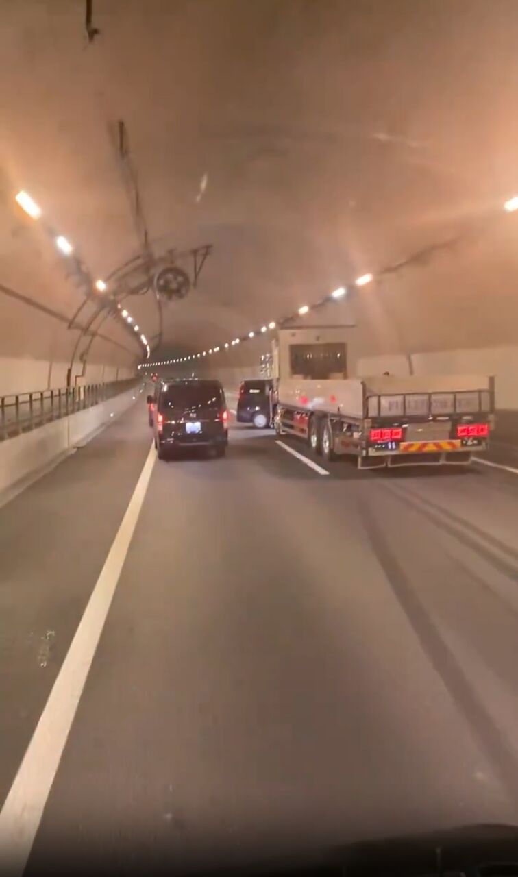 『新名神上り 箕面とどろみ3キロ手前のトンネルで事故 まだやりたて』