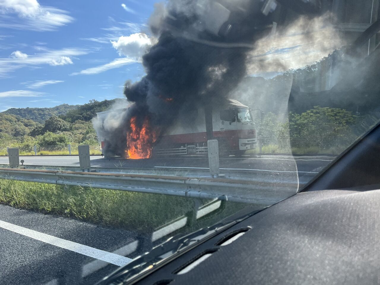 『火災注意 って書いてあって、えー!と思ったらホンマにトラック大炎上してた
