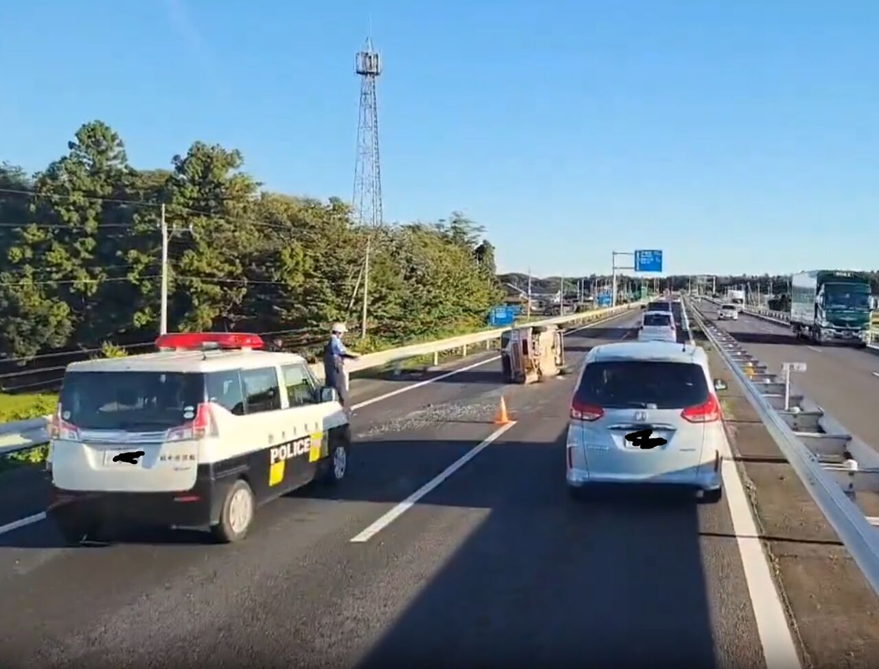 【現場の様子】#交通情報 #国道408号 鬼怒テクノ通り 下り 栃木県真岡市いがしらリゾート南ランプ付近 車線塞ぐ追突事故と横転事故で規制渋滞9月26日 #渋滞 #栃木 #真岡