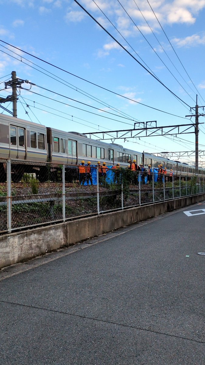 【現場の状況】『現場検証と負傷者の救出作業中』#JR京都線 向日町駅〜長岡京駅で人身事故 #JR神戸線 #琵琶湖線 など遅延9月26日 #京都