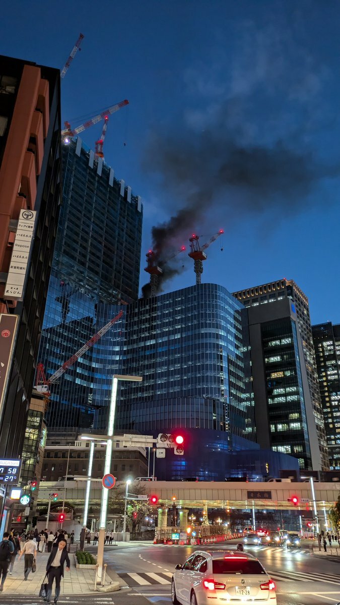 『日本橋の建設中のビル、屋上から黒い煙モクモク出てるんやが大丈夫か?』