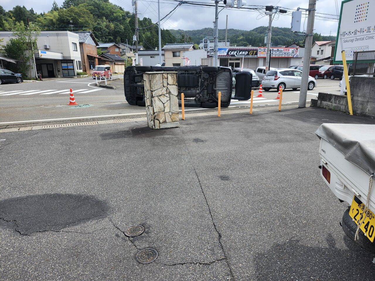 田上町湯田上の交差点で事故です…