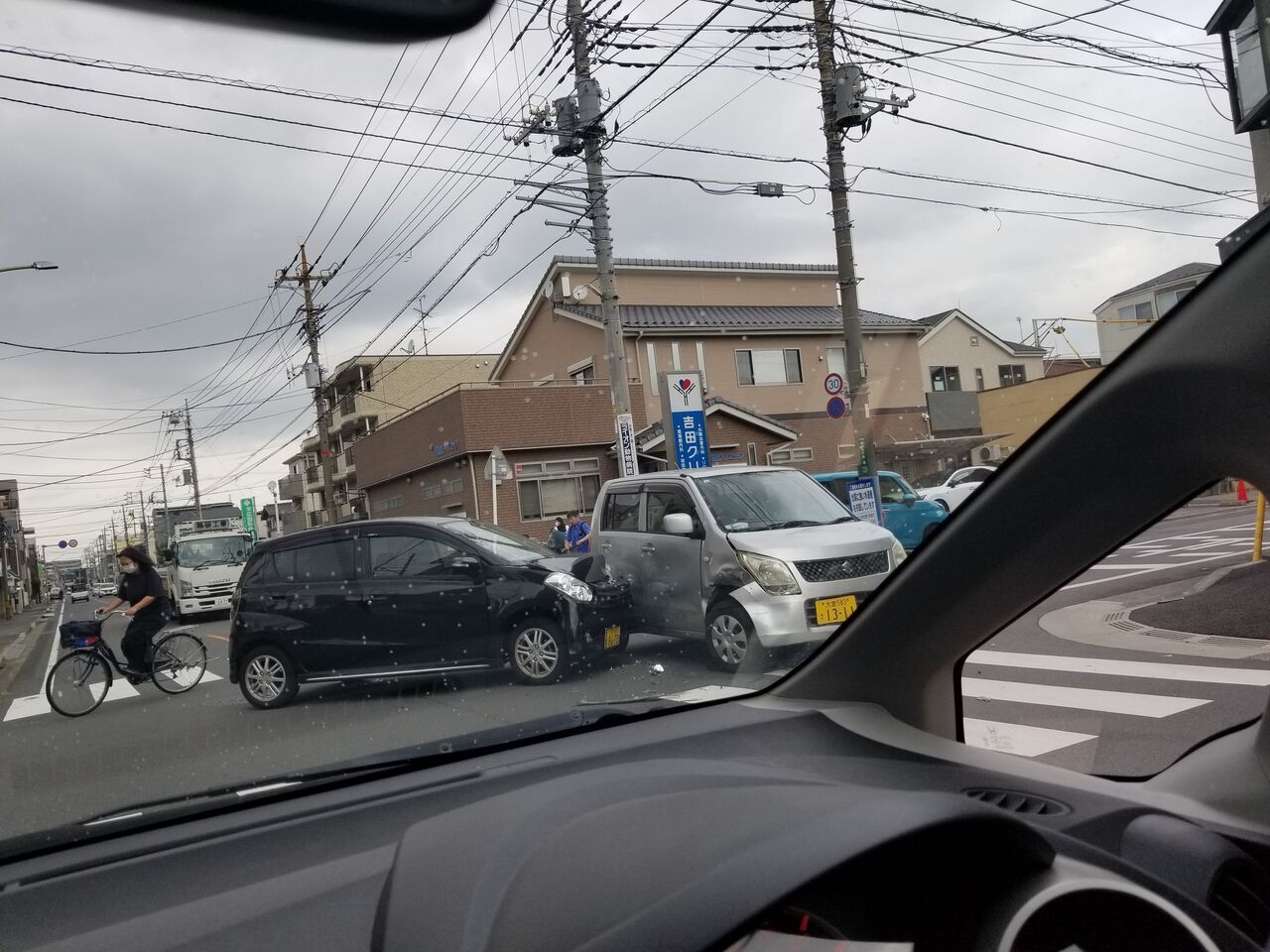 【現場の様子】#交通情報 吉祥寺通り 埼玉県川口市末広3丁目吉田クリニック交差点付近 車線塞ぐ軽自動車衝突事故で規制渋滞9月30日 #渋滞 #埼玉 #川口