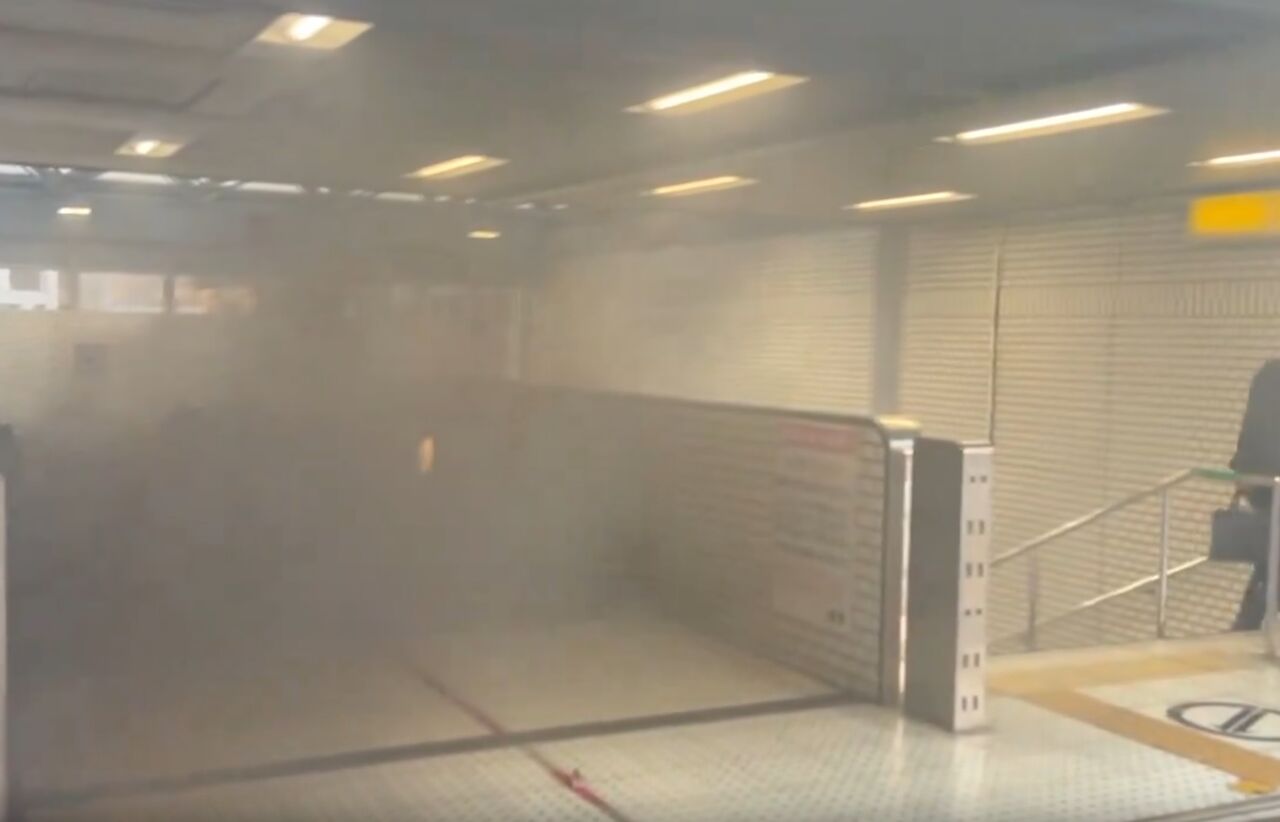 『なかもず駅 駅構内が煙まみれ💨 エスカレーターが燃えたのかな?』