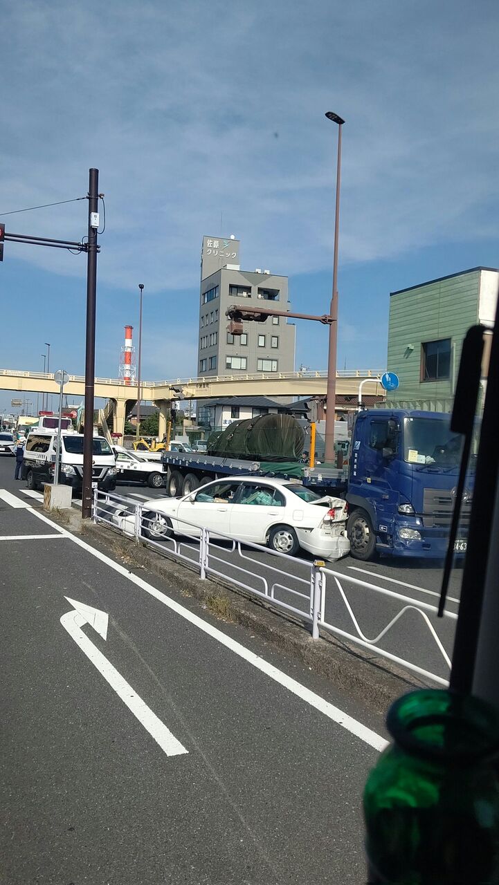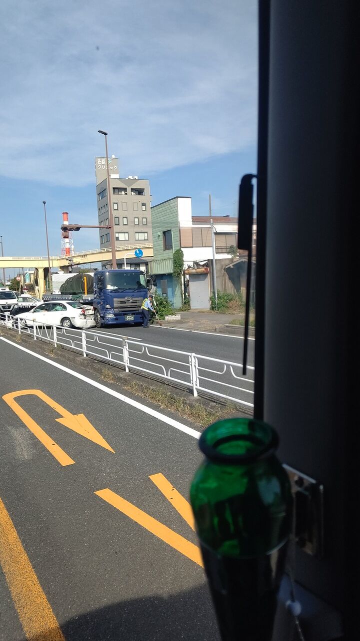 【現場の様子】#交通情報 #国道23号 三重県四日市市蔵町・中納屋町交差点歩道橋付近 車線塞ぐ大型トレーラーと乗用車の衝突事故で上下線一時通行止め渋滞10月1日 #渋滞 #三重 #四日市