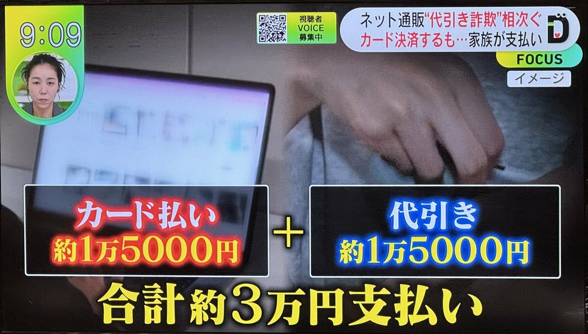 - 購入者、または勘違いした家族が現金を支払ってしまう