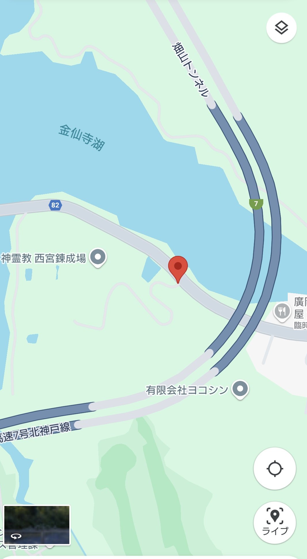 『兵庫県西宮市、金仙寺湖の三田屋付近で事故の為通行止めですよー』
