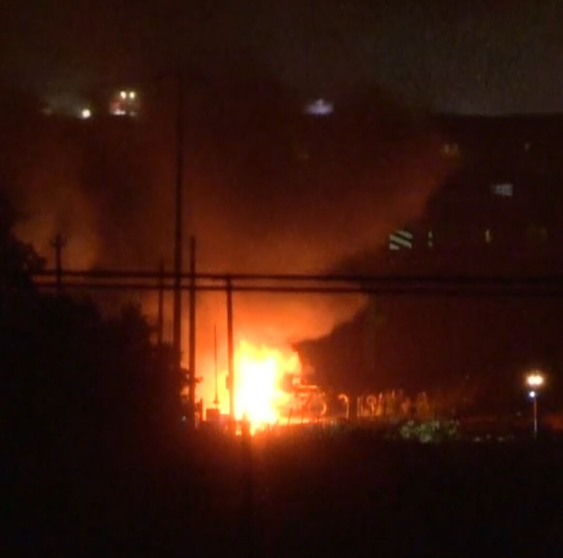 近くにある会社によりますと運送会社のトラックが燃えているとみられています。2回ほど爆発音も聞こえたということです。消防が消火活動を続けています。