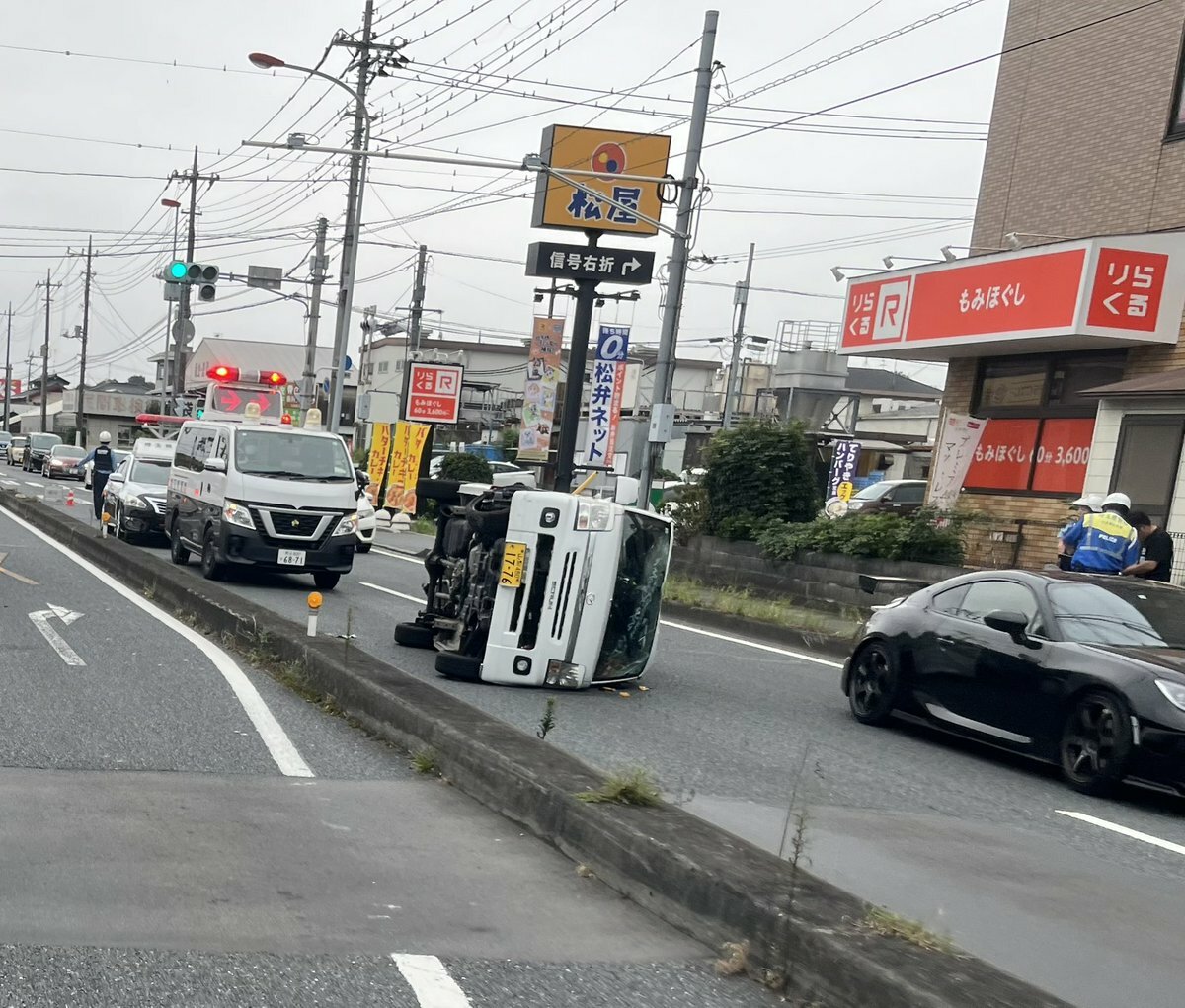 『深井交差点で黒ナンバーのエブリィ横転してた』