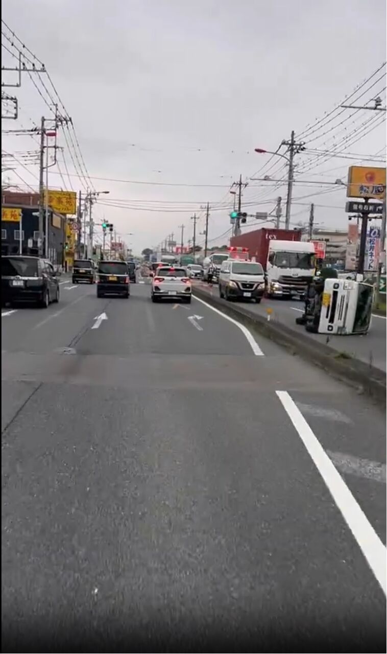 17号北本市深井交差点の横転事故、この事故渋滞でさらに別でアクアとヴォクシーの追突事故やってます。こちらも第二通行帯規制してます pic.twitter.com/EUaHFNXJX8
