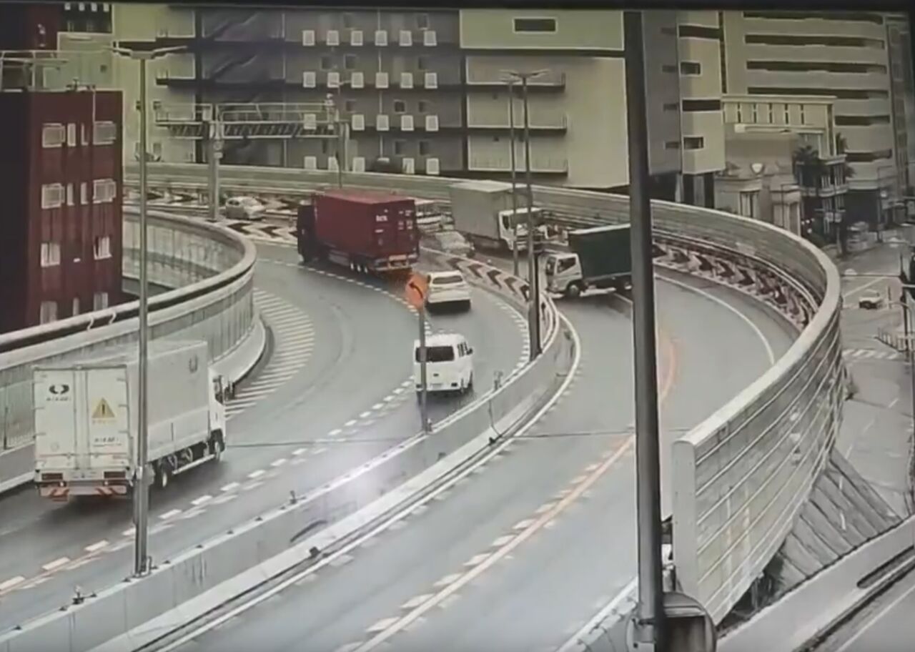 【現場の様子】#交通情報 #阪神高速 12号守口線 下り 大阪市北区扇町付近 車線塞ぐトラック壁激突事故で規制渋滞10月3日 #大阪 #北区 #扇町