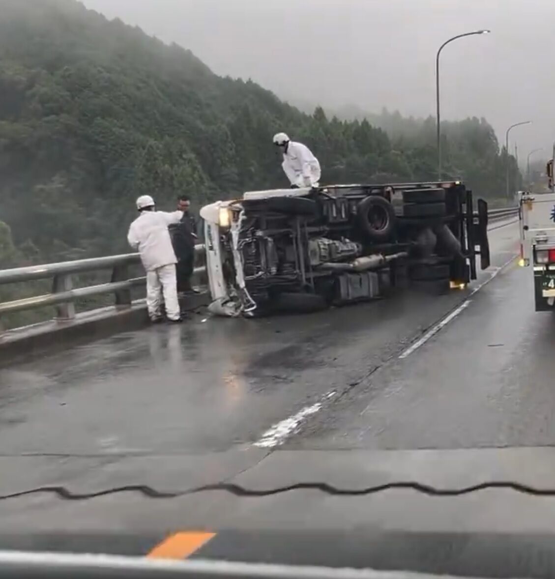 『名阪Ω終端で横転しとる』