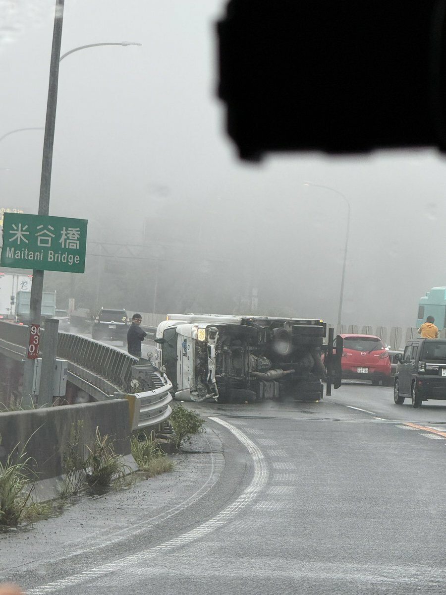 名阪Ω終端で横転しとる pic.twitter.com/kIY4u7LISO