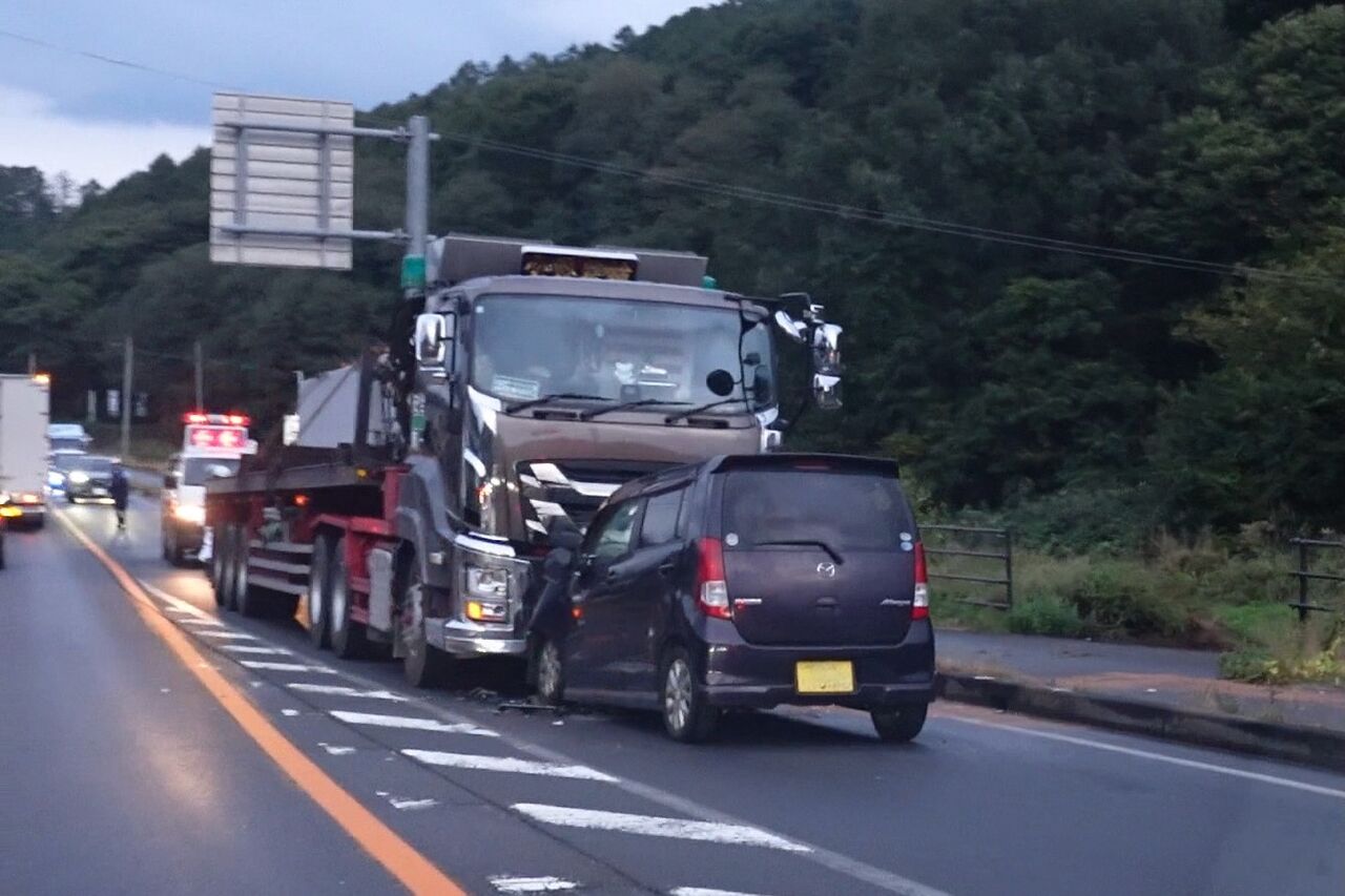 【現場の様子】#交通情報 #国道142号 上下線 長野県佐久市布施付近 大型トレーラーと軽自動車正面衝突事故で規制渋滞10月3日 #渋滞 #長野 #佐久 #望月