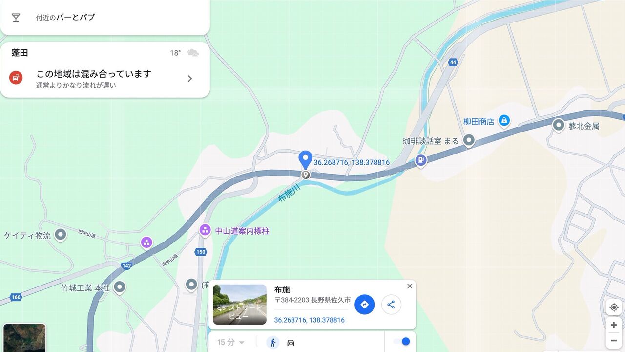 『望月ー佐久平間の道路が、事故の影響で交互片側通行になり、渋滞中。』