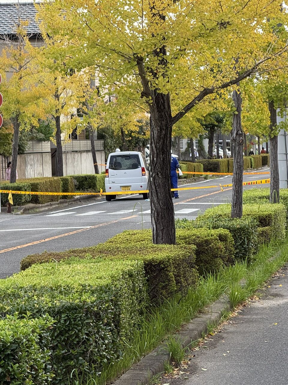 【現場の状況】#交通情報 神園大橋通り 佐賀県佐賀市開成6丁目付近 パトカー出動し軽自動車を規制線で囲む10月4日 #佐賀