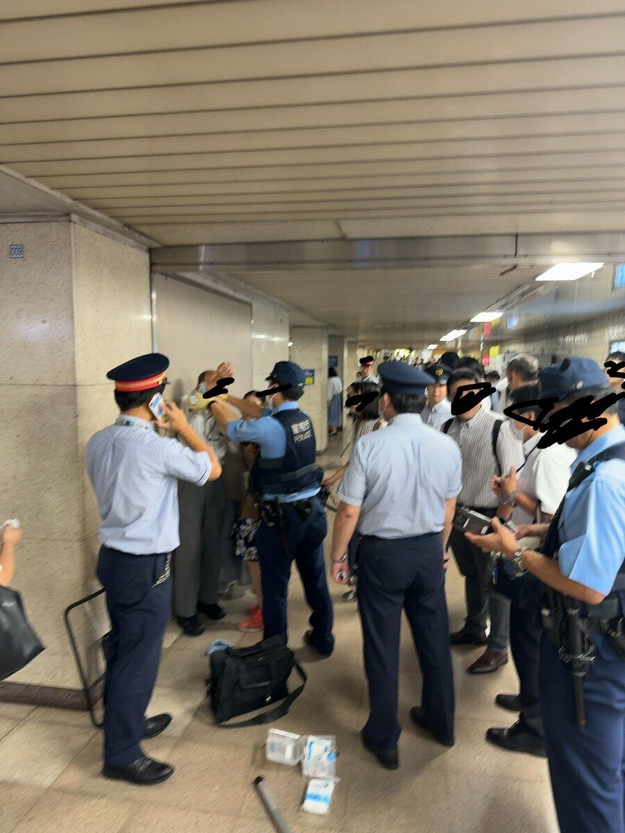 メトロ飯田橋駅の地下通路に血溜まりが出来てて警察消防来てて規制線張られてる😰