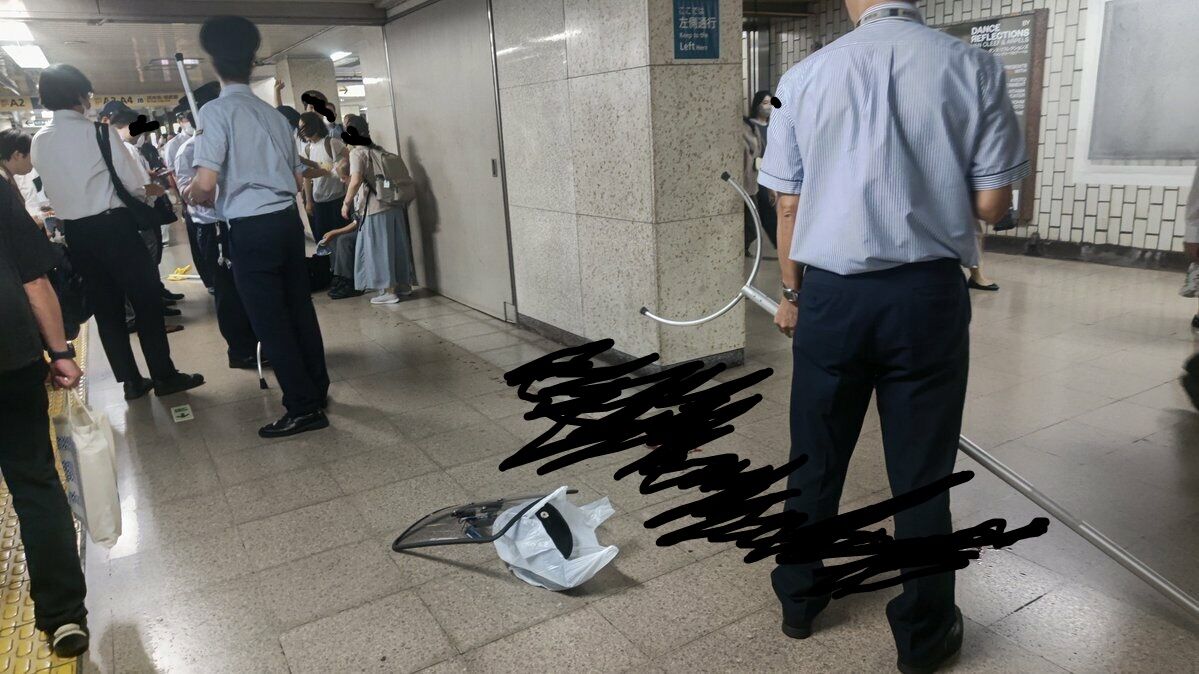 『飯田橋の東西線の改札とローソンの間に大量の血痕とさすまた持った駅員さんいて怖い』