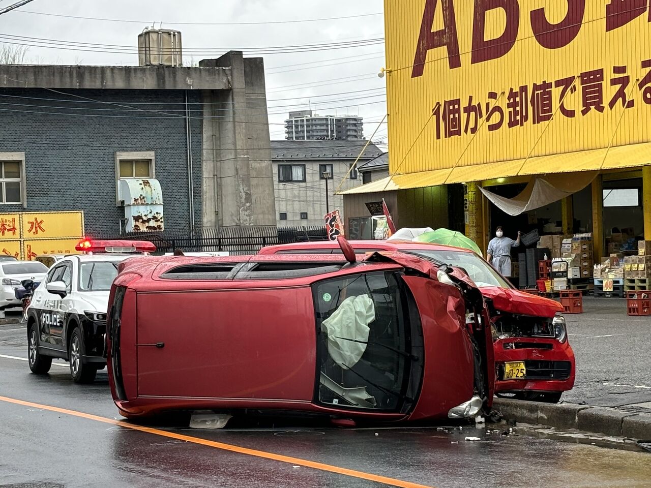 【現場の様子】#交通情報 県道376号線 埼玉県三郷市谷口 ABS卸売センター三郷店付近 車線塞ぐ衝突横転事故で規制渋滞10月5日 #渋滞 #埼玉 #三郷