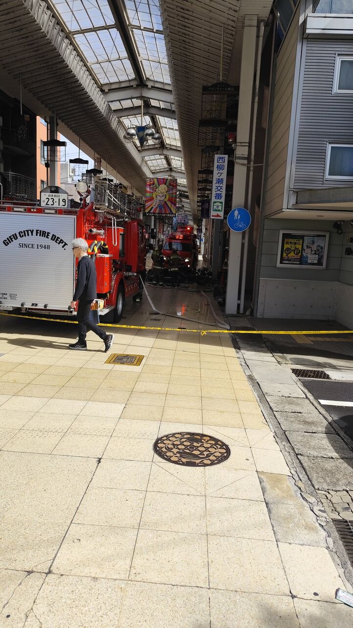 【火事情報】岐阜県岐阜市柳ケ瀬通6丁目 柳ヶ瀬商店街付近 消防車救急車が出動し一部規制封鎖火災騒ぎ10月5日 #岐阜 #火災