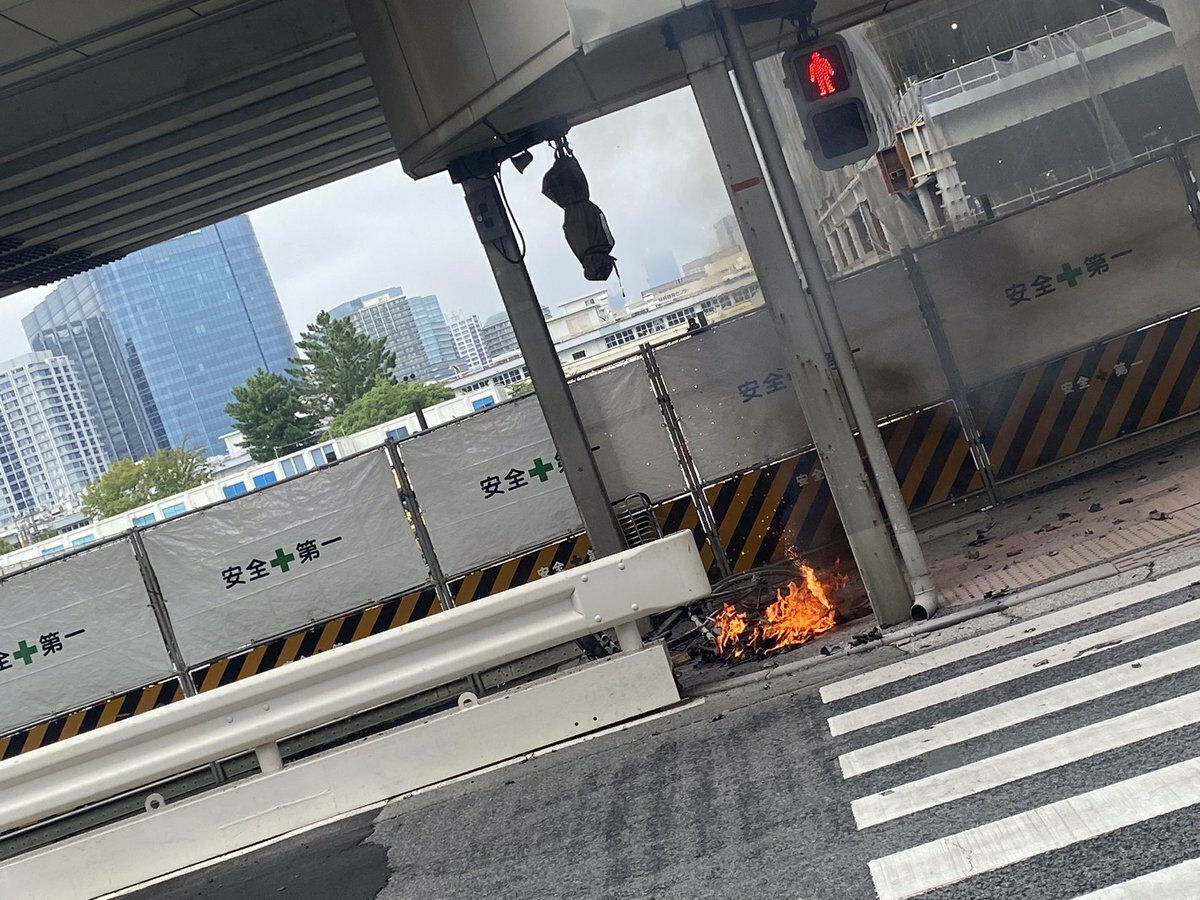 『大井町駅の近くで、なんか自転車が燃えてる😳❗️』