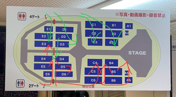 どう考えても後ろから前、前から後ろブロ出る+縦花横花割らずに上手のオタク半周させてるせいだろ通路狭いのに動線ぐっちゃぐちゃで圧死しかけたオタク被害者すぎる pic.twitter.com/06fwJkczEI
