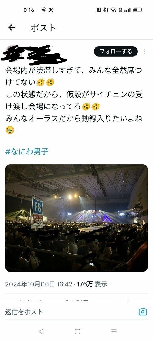 悲鳴も聞こえて、すごいこわかった😭#なにわ男子 #朱鷺メッセ #alpha pic.twitter.com/enrFSquW4A— ♡ (@hssn____) October 6, 2024