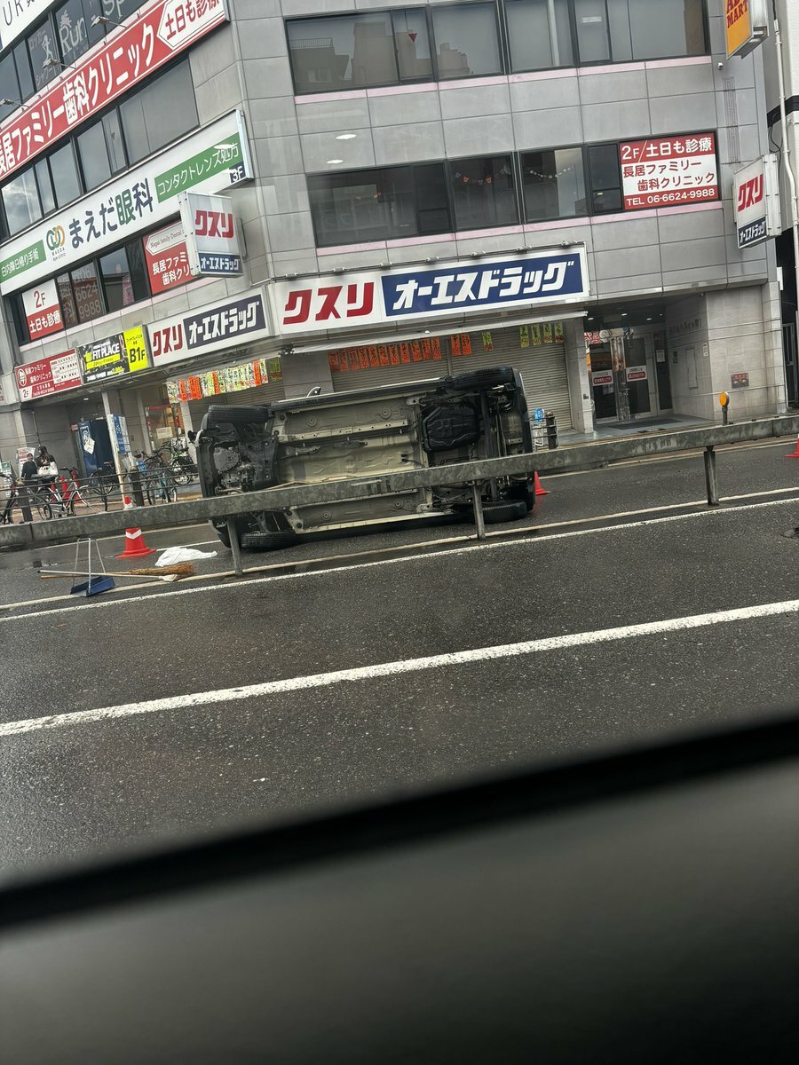 長居公園近くで車横転してたやばい pic.twitter.com/CcatCcNDCv