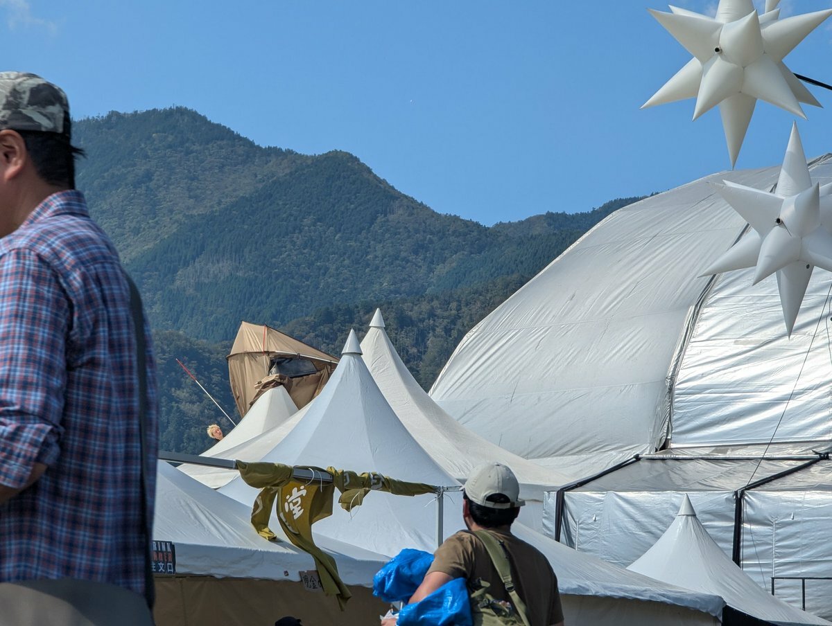 朝霧jam、急な突風で観客のテント飛んでった。みんなペグはちゃんと刺せよ pic.twitter.com/etNcG0EGFj