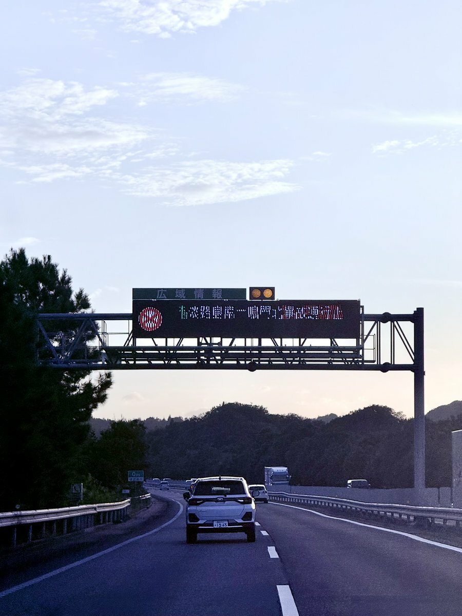 淡路島高速下り重大事故が起こって、鳴門海峡の下りは通行止めです。
