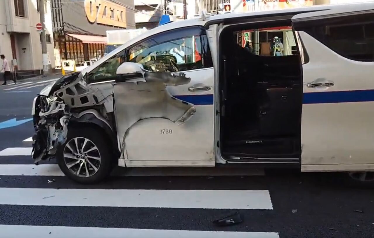 『新大橋通りの車7台の事故。タクシー乗ってたのが外国人旅行者なのかな?頭から血がでてた』