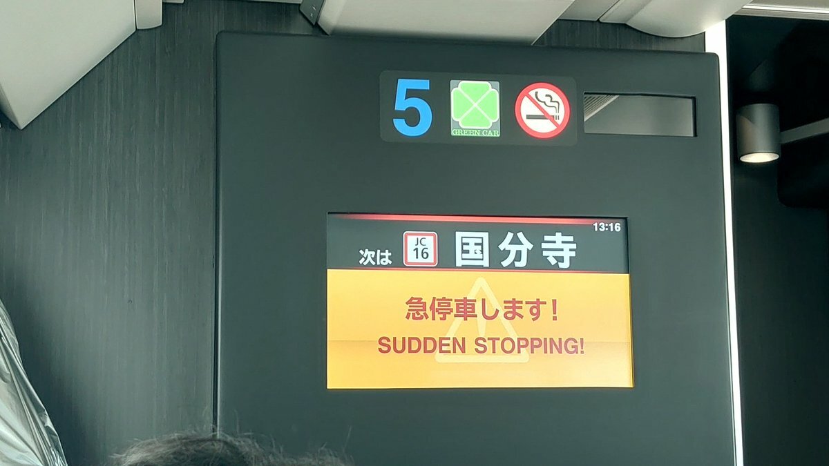 中央線グリーン車まさかの急停車 pic.twitter.com/amDYHt30Lj