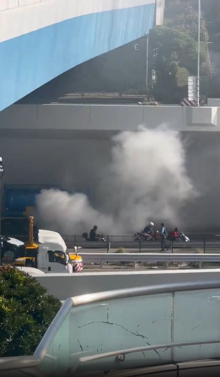 【現場の状況】#交通情報 #国道357号 湾岸道路 西行き 東京都江東区青海1丁目トンネル手前付近 タンクローリーから煙あがる車両火災規制渋滞10月15日 #江東区 #お台場 #火災