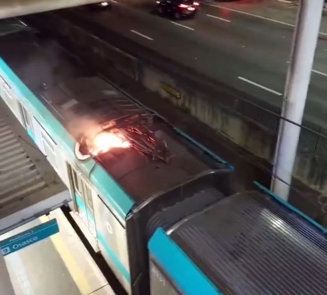 O teto do vagão de um trem pegou fogo durante uma viagem, na noite desta segunda-feira (14), em São Paulo. Um vídeo gravado por passageiros mostra o momento em que o incêndio começou.