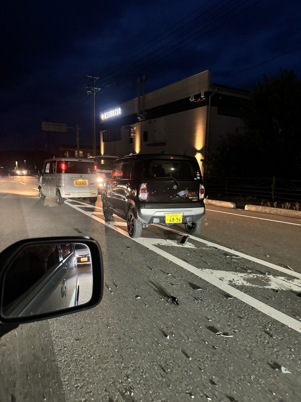 【現場の様子】#交通情報 県道36号線 山形県村山市擶山 セブンイレブン村山金谷工業団地前店西側付近道路 破片散乱衝突事故で交通規制10月18日 #山形 #村山