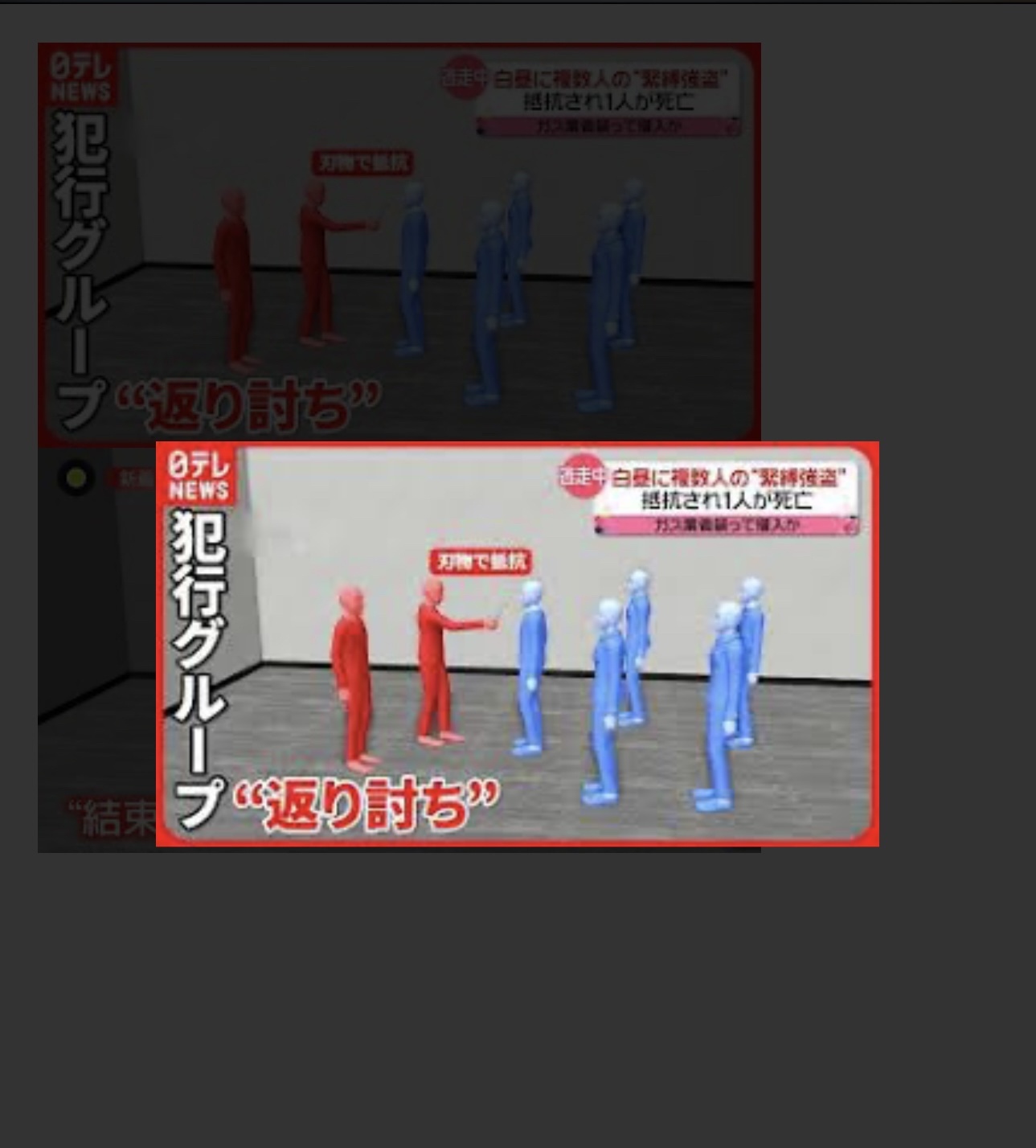 男性社長が隙を突いて、1人を刺したところ、その1人を残し、他のメンバーは逃走したという。反撃された男は、意識のない状態で、病院に運ばれたが、その後、死亡が確認された。