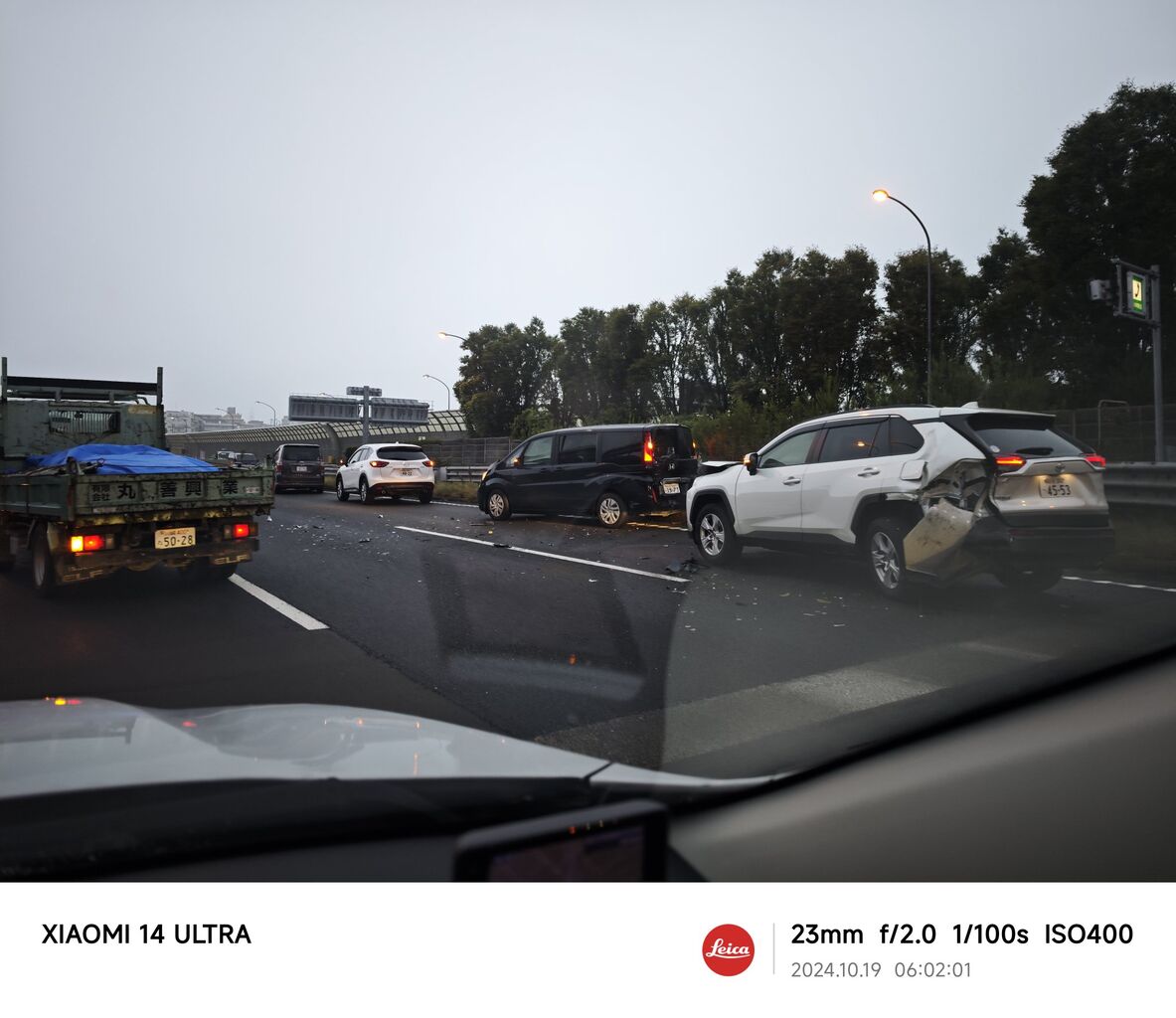 【現場の様子】#交通情報 #東名高速 下り 横浜青葉IC→港北PA付近 破片散乱する車両5台追突事故で規制渋滞10月19日 #渋滞 #東名 #横浜