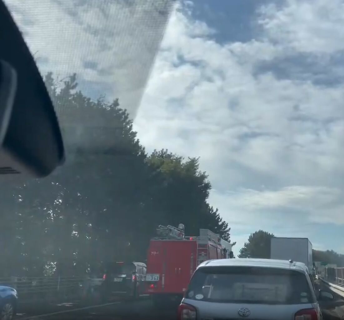 『東部道路の荒井あたりで車両火災っぽい🔥』