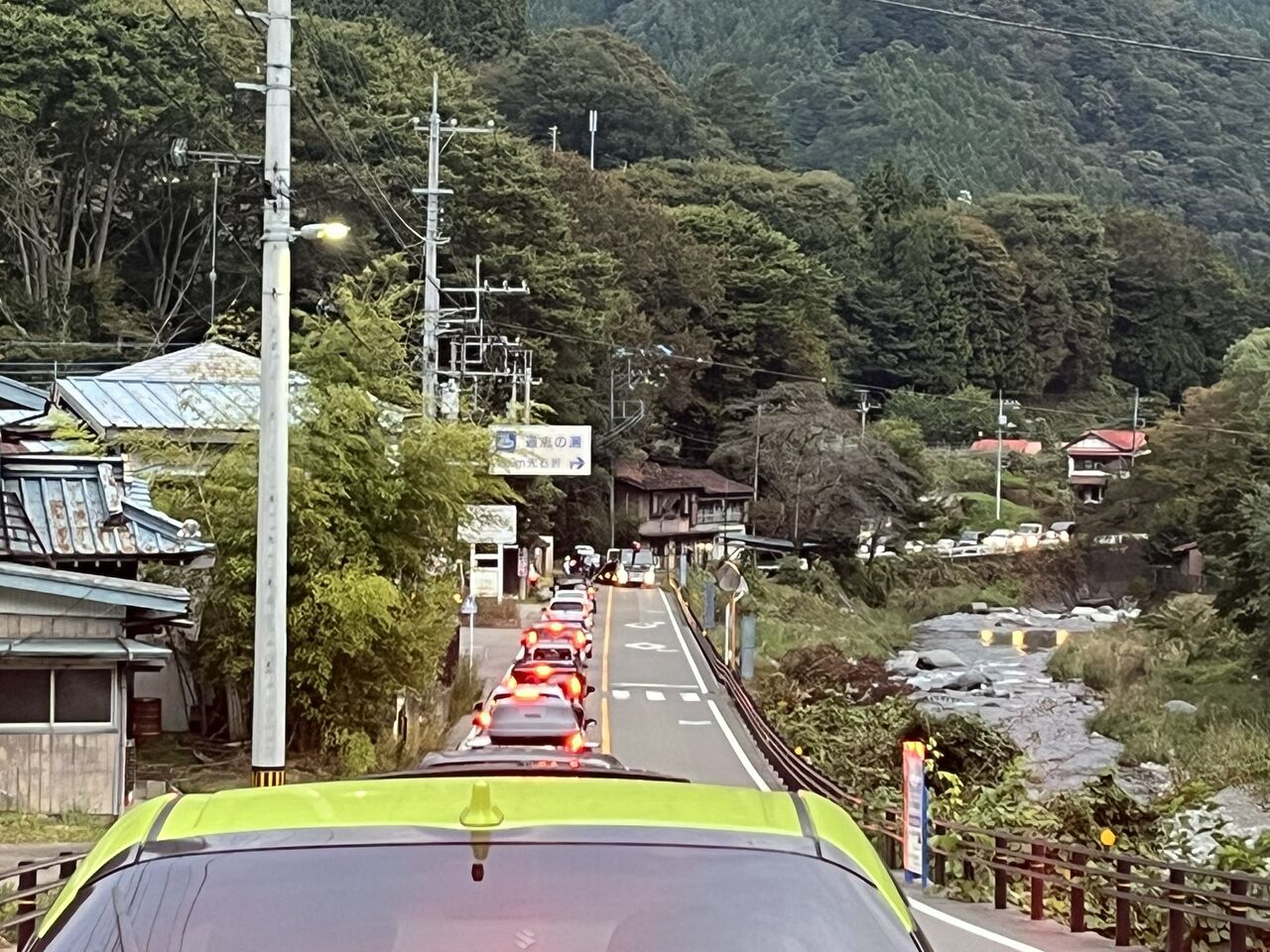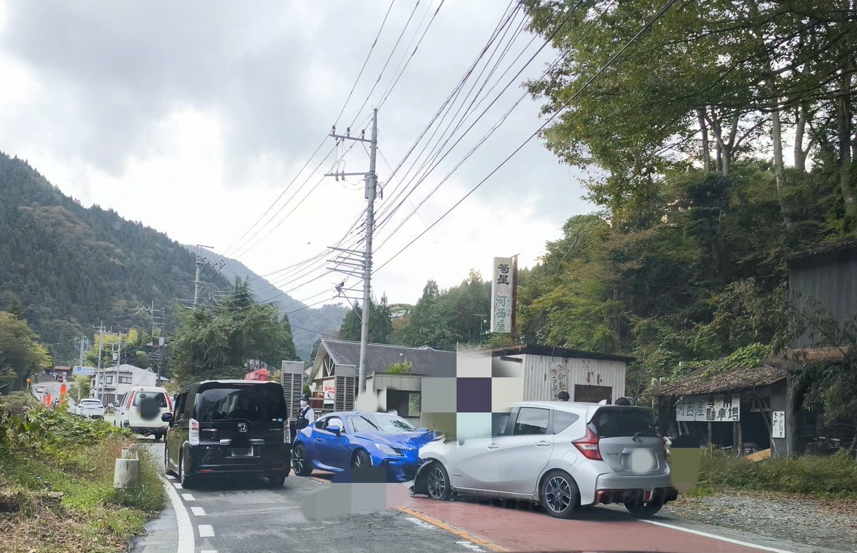 【現場の状況】#交通情報 #国道413号 道志みち 山梨県南都留郡道志村谷相レストランホロホロ付近 スバルBRZとノートニスモの正面衝突事故で規制渋滞10月19日 渋滞 #山梨 #道志村