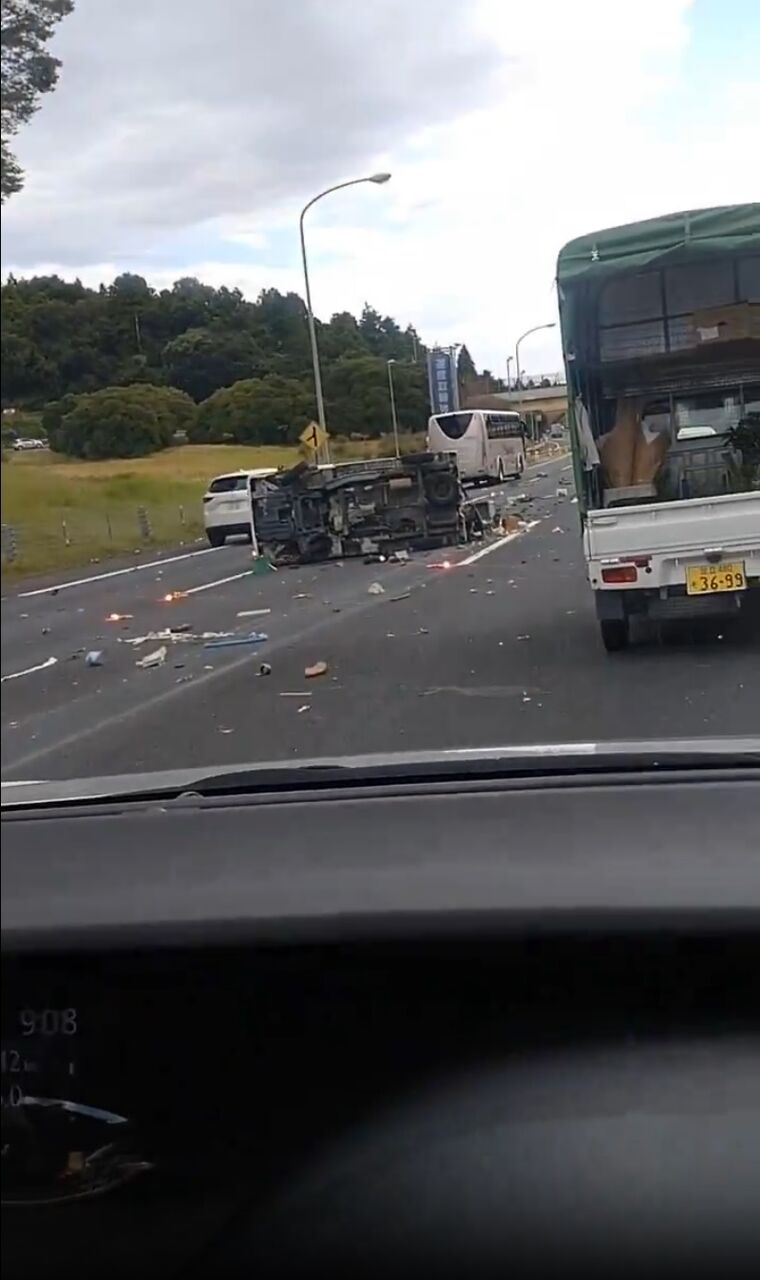 『酒々井あたりの高速道路の渋滞の原因になってるやつ、派手に横転しててビビったわ』