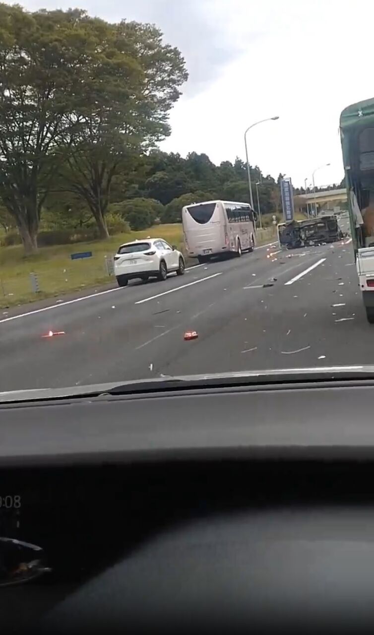 酒々井あたりの高速道路の渋滞の原因になってるやつ、派手に横転しててビビったわ