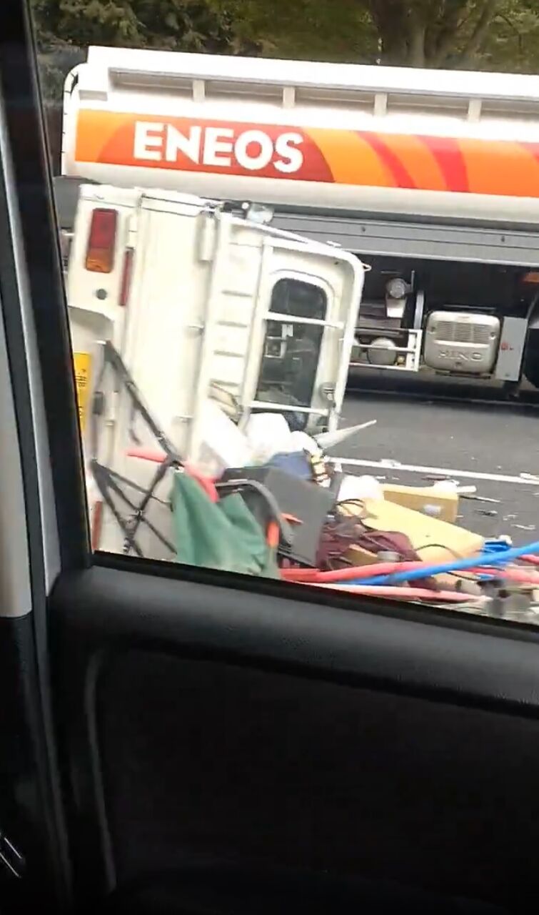 『東関道の佐倉辺りで軽トラひっくり返ってるらしい』