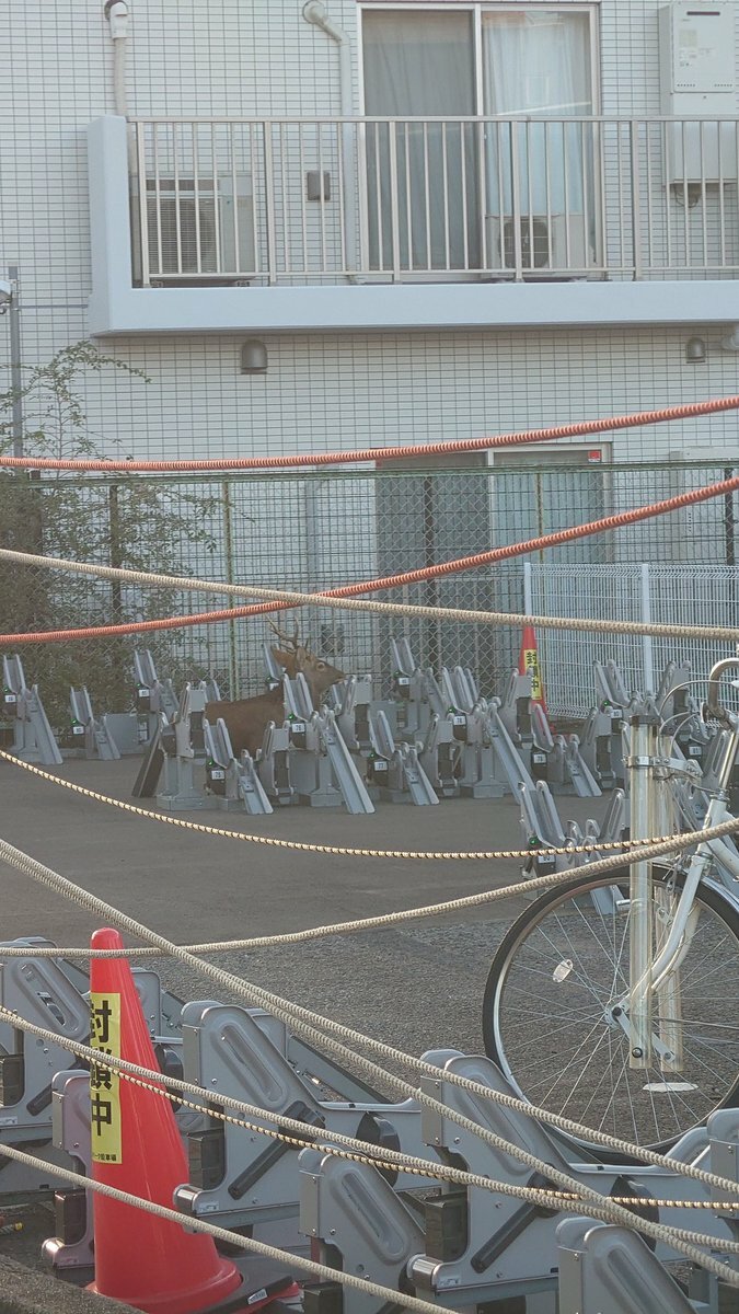 事件じゃなくて駐輪場に鹿が居るみたいね。 pic.twitter.com/jKj2Ro4lZo